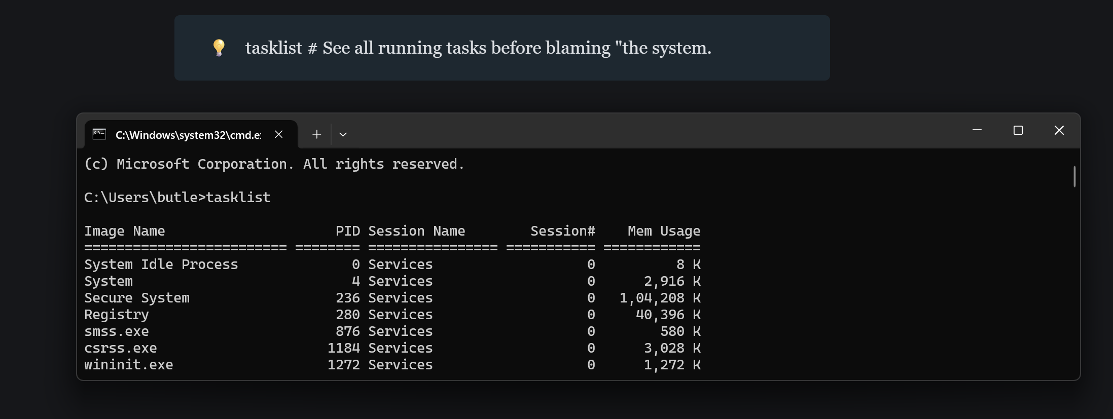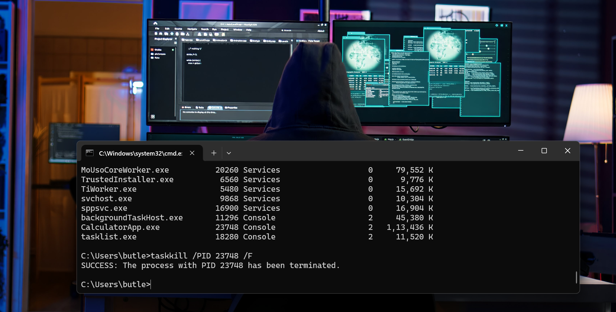 taskkill /PID <id> /F #Terminate processes like a responsible digital vigilante